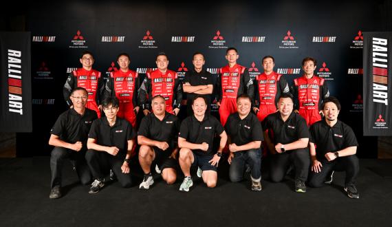 「チーム三菱ラリーアート」はタントスポーツ(タイ)が運営するラリーチームで、三菱自動車工業が技術支援している。2022年はAXCR初出場で同社の世界戦略車となる1tピックアップトラック「トライトン」で総合優勝を果たし、2023年も同年7月に発売開始したばかりの新型「トライトン」で3位入賞、昨年は5位入賞を果たした。今年は新型「トライトン」3台体制での出場を予定しており、2022年の覇者であるチャヤポン・ヨーター選手および昨年5位を獲得した田口勝彦選手は前回仕様をベースとした改良車両、昨年初出場で完走を果たした小出一登選手は競技用に最適化されたオートマチックトランスミッション車で参戦する。