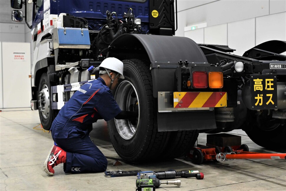 タイヤメンテナンスの技能を競う「技能グランプリ」では、同社グループが、輸送事業者の安全運行を確保するために独自のトラック・バス用タイヤの作業標準を策定・展開し、高いサービス品質の維持・向上に継続的に取り組んでおり、本競技会は、タイヤメンテナンスに携わるメンテナンススタッフの重要な育成活動の一つである。本年は全国の同社グループおよび関連のトラック・バス用タイヤ販売店から344名が地区予選に出場し、予選を勝ち抜いた代表選手40名が、全国大会においてタイヤメンテナンスの作業スキルや顧客へのアドバイス力を実作業形式で競った。