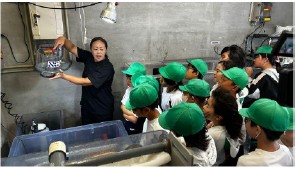 寄贈式には、4年生と5年生の児童54人が参加。寄贈式の後には、アカウミガメの飼育室で、水槽に設置されたプロテインスキマーの見学会が実施された。プロテインスキマーによって水がきれいになる様子や、手入れ方法の説明を受け、「大切にプロテインスキマーを使って、元気な亀に育てたい」といった声があがった。
