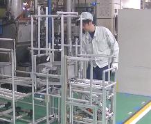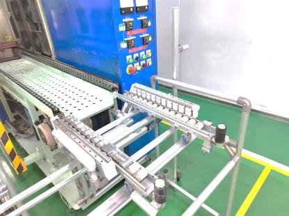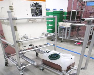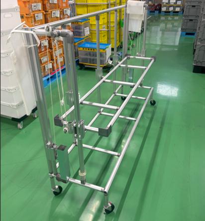 「塗布治具の運搬改善」は住理工汽車部件(中国・広州)から出品される。製品の運搬を目的に設計した設備である。塗布後の製品をシューターで移動させる機構を用い、作業者の移動距離、運搬時間が短縮可能となる。短縮した時間で別作業に着手することで、作業効率の向上にも貢献する。