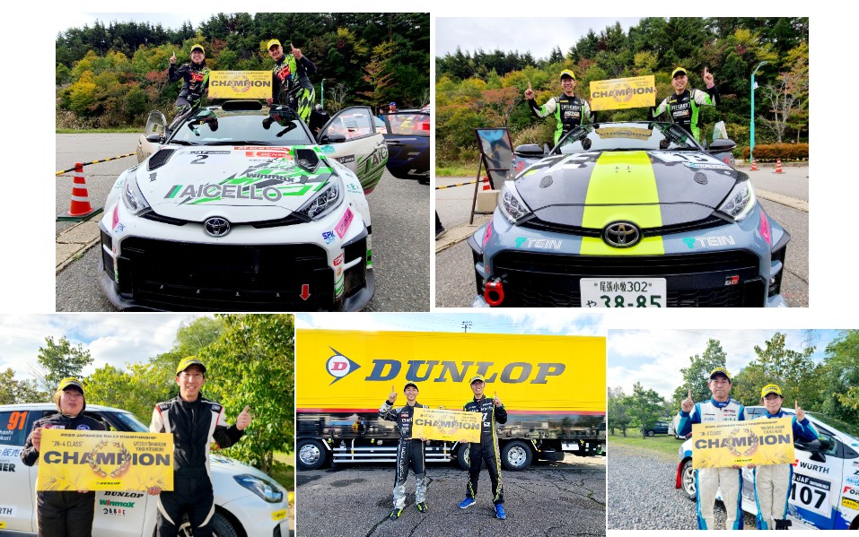 住友ゴム工業は11月12日、DUNLOPとしてサポートする車両が、全8戦で開催された『2025年全日本ラリー選手権』で、全6クラス中5クラスでシリーズチャンピオンに輝いたと発表した。