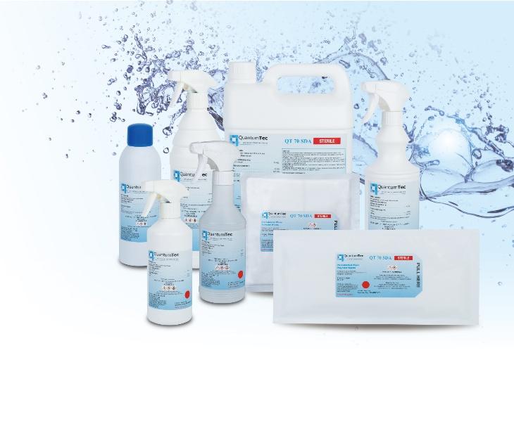 QTエタノール(クリーンルーム用変性エタノール除菌剤)の特長としては、多重包装・滅菌仕様で、外部から微生物持ち込みをシャットアウトする。70%変性アルコール(SDA)とUSP WFI30%の混合液である。メタノールフリー(イソプロパノール含有の変性エタノール使用)である。有効期限は3年間(QTエタノール含侵ワイパーは2年)である。分析証明書(COA):成分規格、γ線滅菌情報、LAL試験結果を含む。様々な製品バリエーションがある。クリーンルーム向けだからこそ、高清浄度環境で製造することが挙げられている。