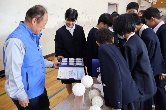地元敦賀市で生まれる「ブレスエアー」を通じて、ものづくりの楽しさと素材メーカーの役割を知ってもらう貴重な機会となった。
