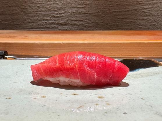 寿司「鮨 重永/Sushi Shigenaga」は、魚は主に九州から直送。鶴橋や黒門の市場でも選ぶ。時には、とろを塩で握り印象付ける。玉子焼にも職人技が冴える。