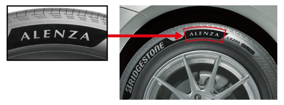サイドの文字・デザインをより黒く際立たせる微細加工技術「LUXBLACK」を広範囲に適用することで、「ALENZA」ブランドロゴをプレミアムな美しさと鮮やかなコントラストで表現する。
