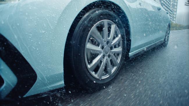 CM後半では、雨の日のヒヤリとするシチュエーションでの制動や、ウェット「a」とウェット「c」を装着した2台の車両による比較映像を交えながら、ヨコハマタイヤのウェットグリップ性能の高さをアピール。ラストは安心感たっぷりに会話を楽しむ親子の姿に合わせて、吉岡さんが「タイヤは雨で選ぼ」と歌い上げてCMを締めくくる。