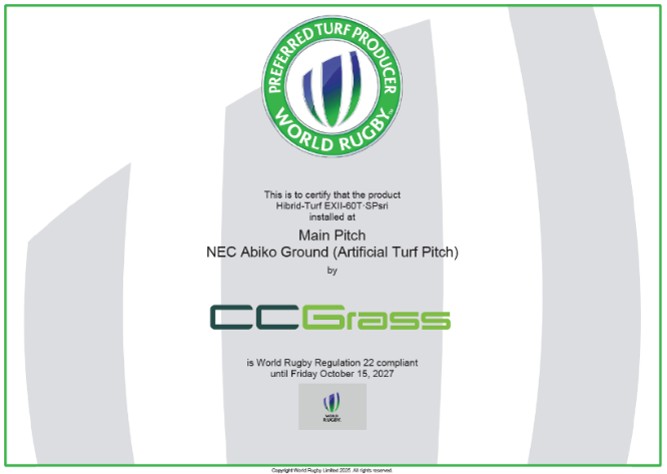 DUNLOPは1月19日、同社のスポーツ用人工芝を採用したピッチが、日本で初めて現在施行されているWorld Rugby Regulation22に基づく常設人工芝施設に認定されたと発表した。認定を受けた施設はNEC我孫子グラウンドで、同社が設計・開発した「ハイブリッドターフEXⅡ」を採用、同社グループの住ゴム産業にて販売・施工を行った。