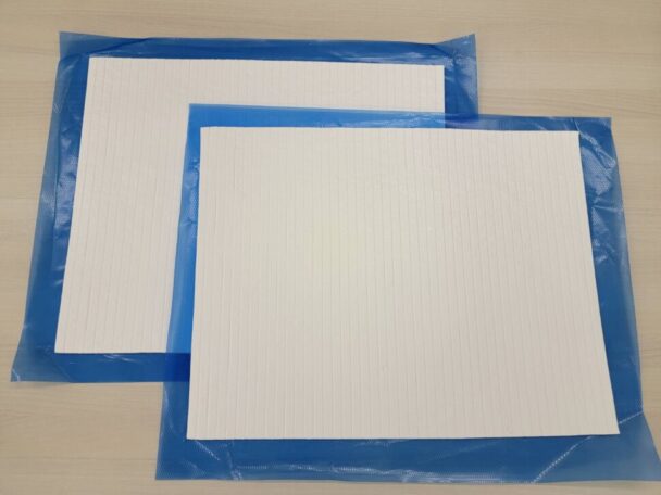 現在、同社が提案する金型洗浄ゴム(ベースポリマーはEPDM)は、金型の間に金型洗浄ゴム(熱硬化性のゴムシート)を挟み込んだ後、通常のゴム製品の加硫工程で加熱硬化すれば、シートが金型に付いた汚れを接着除去される。金型の冷却から取り外し、洗浄、据え付け、昇温といった工程が不要になることから、金型の洗浄工程の大幅な時間短縮につながるのはもちろん、生産性向上にも寄与する。