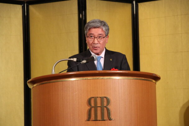 その後、小島理事長をはじめ、十川副会長、岡浩史理事・相談役、大西理事・相談役らが壇上に上がり鏡開きを行い、新年の門出を祝った。続いて太田稔副理事長が乾杯の発声を行い、出席者は歓談の輪を広げた。