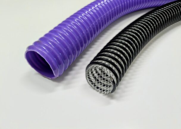 弘進ゴムは26年2月から耐油サクションホースで同社従来品(GSサクション耐油BS型)に比べて軽さ、柔らかさを追求した新商品「GSサクション耐油パープル」「GSパワーライン耐油BM型」の発売を開始した。