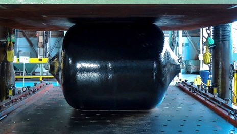 今回発売したフォーム式防舷材は、ゴム式防舷材で長年培ってきた同社の技術と知見を活かし、高い耐久性と復元性能を実現している。外面層には耐久性の高い繊維補強材と特殊樹脂の複合素材を採用した。内部には独立気泡構造の特殊フォーム材を用いることで、繰り返し使用時にも形状を回復しやすく、長期使用を見据えた性能を備えている。こうした構造により、同製品は国際的なガイドラインに基づく3000回の繰り返し圧縮試験に耐えることを確認しており、ゴム式防舷材と同等の耐久性を確保している。