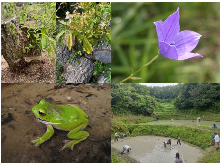 希少な動植物の保全のための、あぜの草刈り、ため池の整備・補修作業などの環境整備、大学や市民団体との連携による水や土壌などの環境中に存在する生物から放出されたDNAを用いた生物調査、里山資源の有効かつ持続的な利用、耕作放棄地の棚田や畑の再生、伐採による光が差し込む明るい森林環境の再生、竹林整備その他、生物多様性保全のための活動。